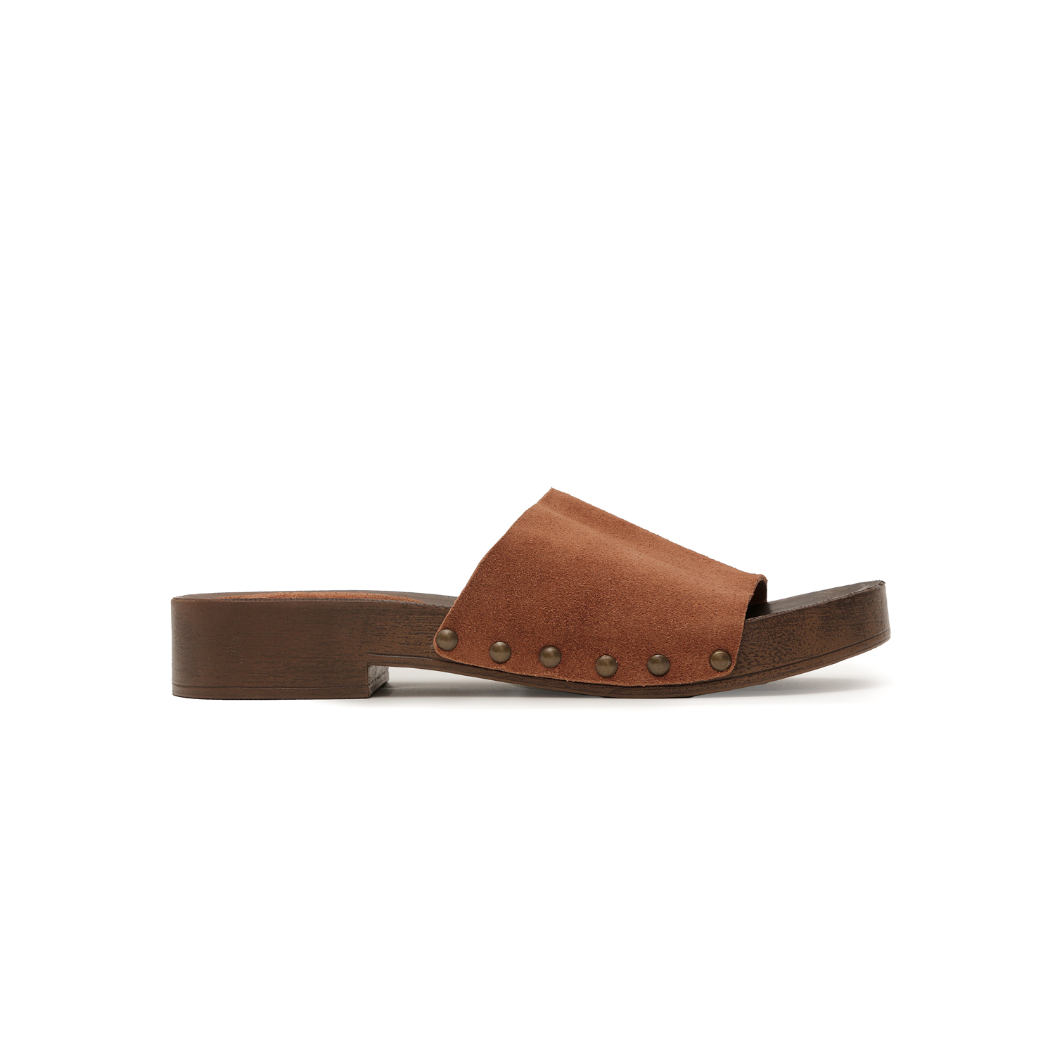 O design clean com rebites metálicos laterais valoriza o estilo artesanal, enquanto o solado com acabamento amadeirado adiciona um toque contemporâneo e elegante. A calcanheira espumada e forrada proporciona conforto nos pontos de maior apoio, ideal para o uso prolongado e para o dia a dia.